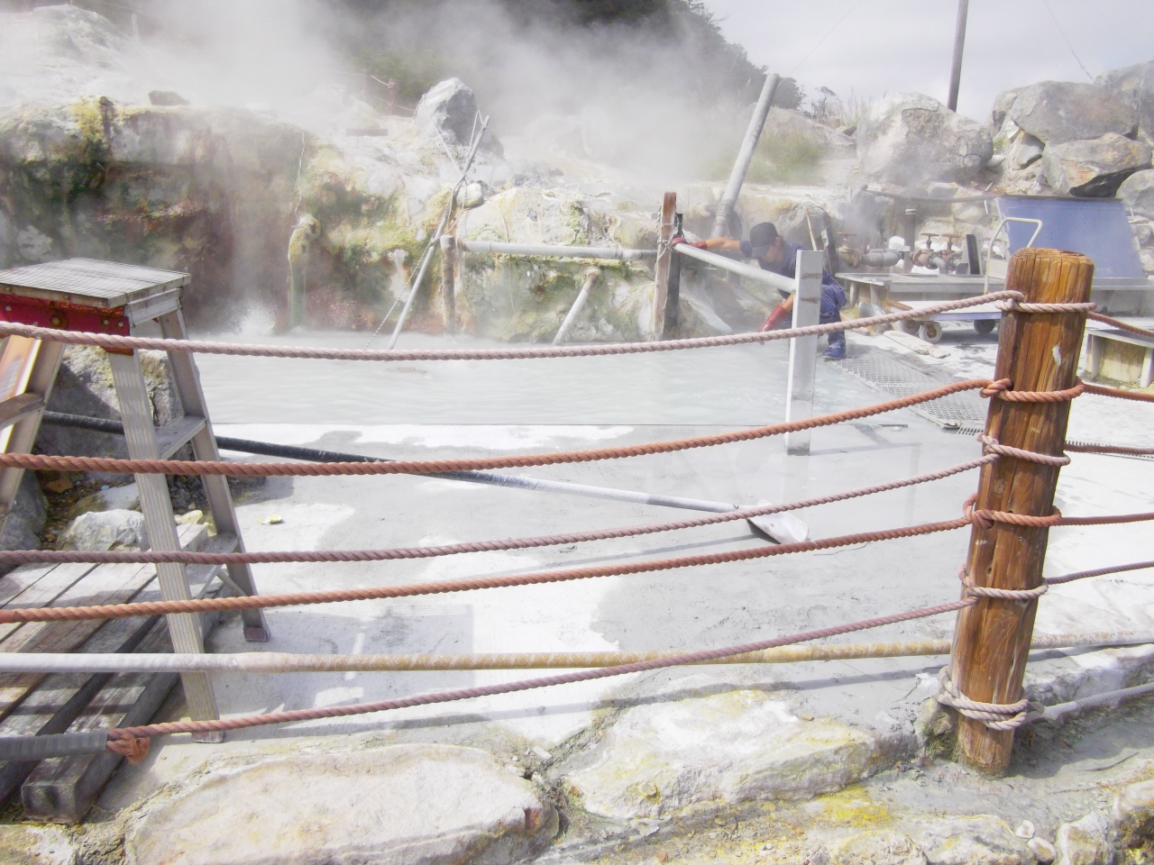 独特の硫黄の匂いが立ちこめていて、でも熱水で茹でられた黒卵が売られていて見学もお腹も楽しいところです。大地の息吹が感じられる場所です。