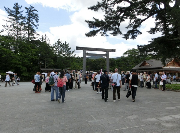 手水舎は少し手前にありますが、昔からの祓い場で参拝する前に、五十鈴川の清流で身も心も清めてからお参りするのが古来からのしきたりです。参拝の前に口をすすぎ、手を洗って清めると身が引き締まりますね。
