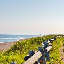 網走国定公園の一部でもある小清水原生花園。5~6月には水芭蕉が咲きとても美しいそうだ。私たちが訪れたのは9月で花は殆ど咲いていなかったが、散歩をするコースが作られ、海を見ながら歩く遊歩道を歩くことができるのでとても気持ちが良い。もちろん海まで降りることができる。