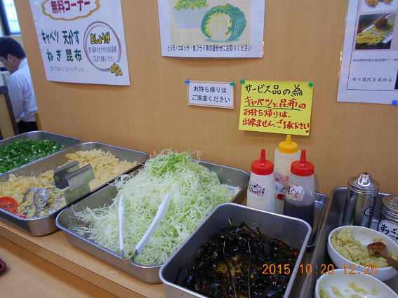 キャベツと昆布が無料サービスです。