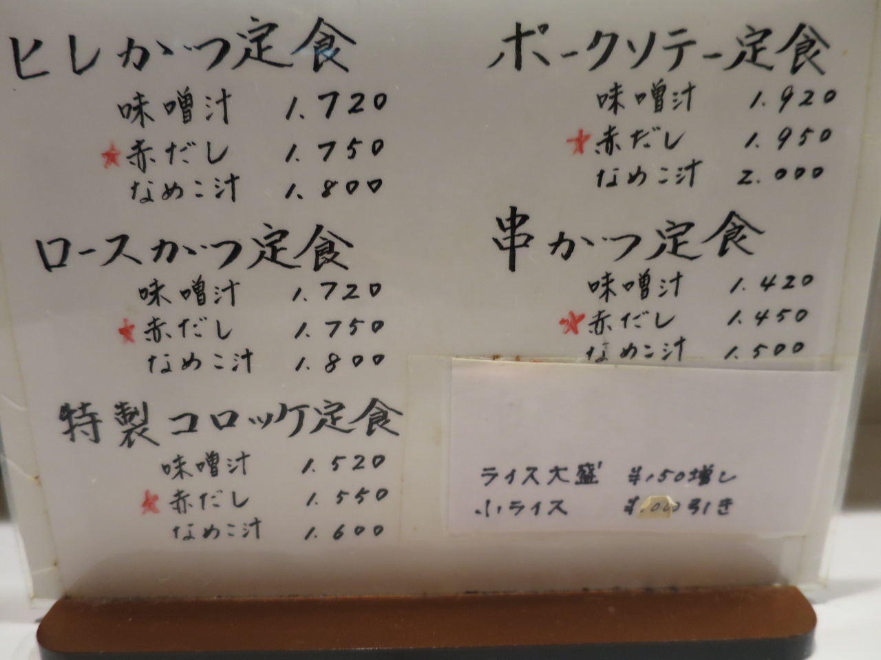 自由が丘のロータリーにある住友銀行の脇道を入って行き、マクドナルドの左斜め前にある古くからある小さなとんかつ店です。1階はカウンター6席、2階にも客席があります。