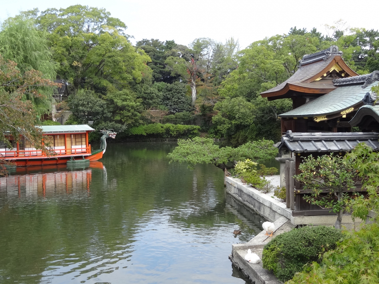 御池通の名前の由来にもなった神泉苑。その池には美しい船が浮かび、願いが叶うという赤い橋(法成橋)も印象的。元々は天皇のための庭園であるが、今は無料公開。京都三大祭りの祇園祭は八坂神社の祭りであるが、もとはこの神泉苑が発祥の地。11月には狂言も行われ、紅葉の時期にはライトアップもされてとても美しい。