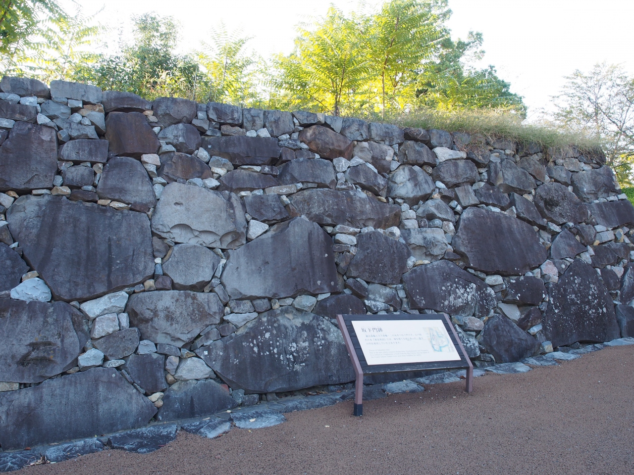 案内板がなければ見逃してしまったと思いますし案内を見てもどこに門があったの?という感じでした。ここ以外にも、この公園内には敷地に対して復元された門や門の跡がたくさんあって、守りを固めるために門って大事だったんだなぁと思いました。