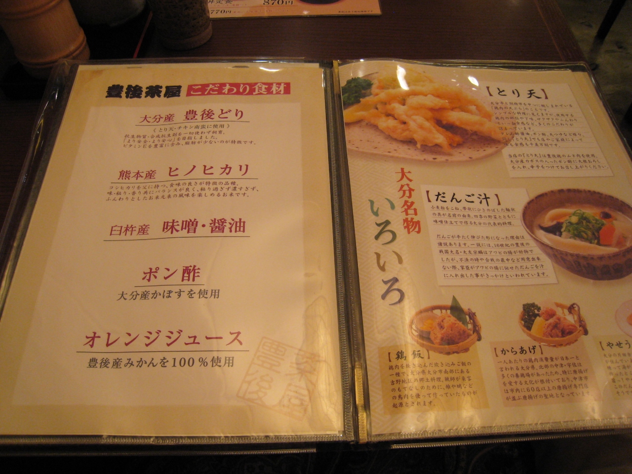 大分名物のとり天と団子汁を一緒に食べられて、とてもお得だと思いました。
