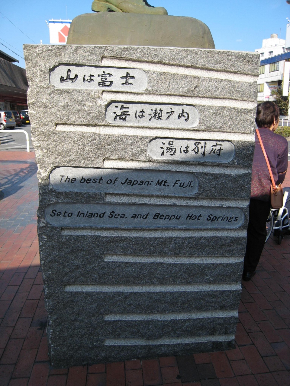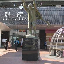 別府駅東口前に別府観光に尽力した油屋熊八の像が立っています。