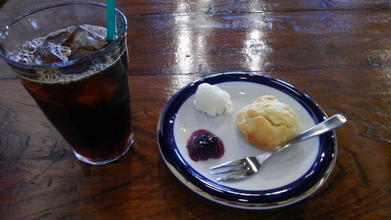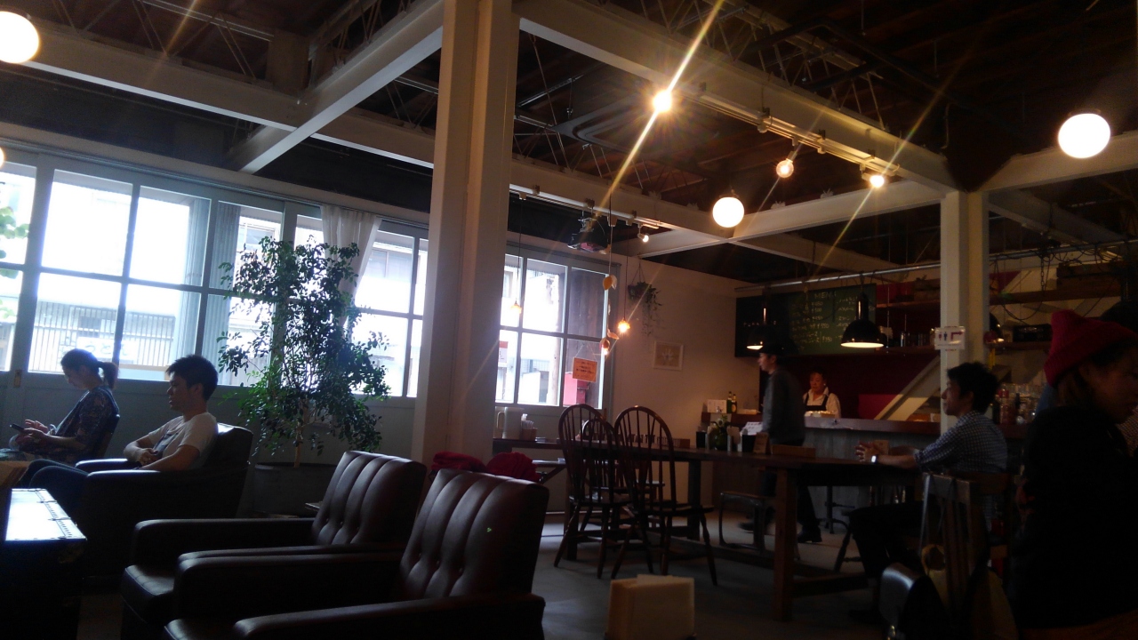 昭和チックな元倉庫兼アパートを改装したカフェで、一見通り過ぎてしまいそうになりますが、中に入ると色々な椅子やソファが置いてあり、雰囲気は良いです。カウンターで注文し、テーブルに運んで貰う形式で、コーヒーの他にパンケーキ、チーズケーキ、スコーン等もありました。