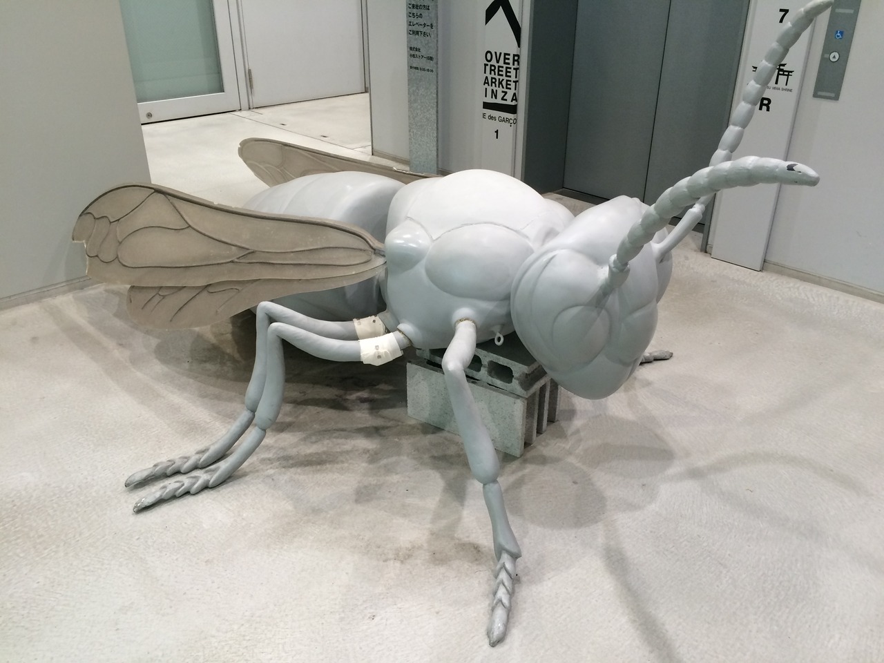 西館は裏通りになるためか、ひっそりとしていました。たしかにユニクロとは客層がまったく異なりますが。。ビル内にはちょっと気持ち悪いモニュメントもありました。笑