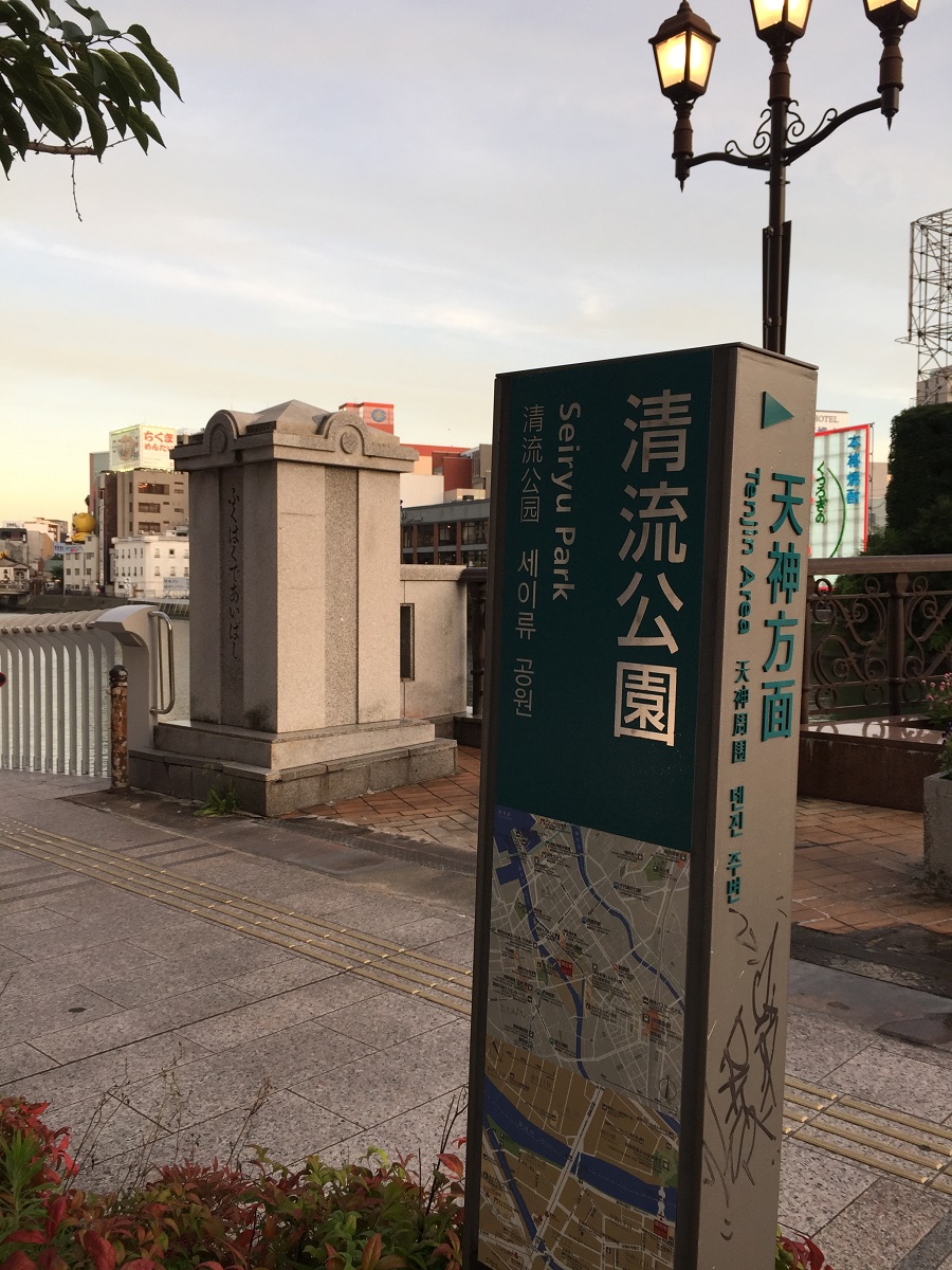 川沿いに屋台が並ぶエリアで高灯籠などもあって昔ながらの風情があるかと思えばキャナルシティのネオンがきらきらしていて夜の街らし華やかさもあります。