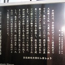 ここに行くと、東京都教育委員会、千代田区教育委員会、神田明神、史跡将門塚保存会などの説明板がありますが、これらには不審な事故があったことは書かれていません。
