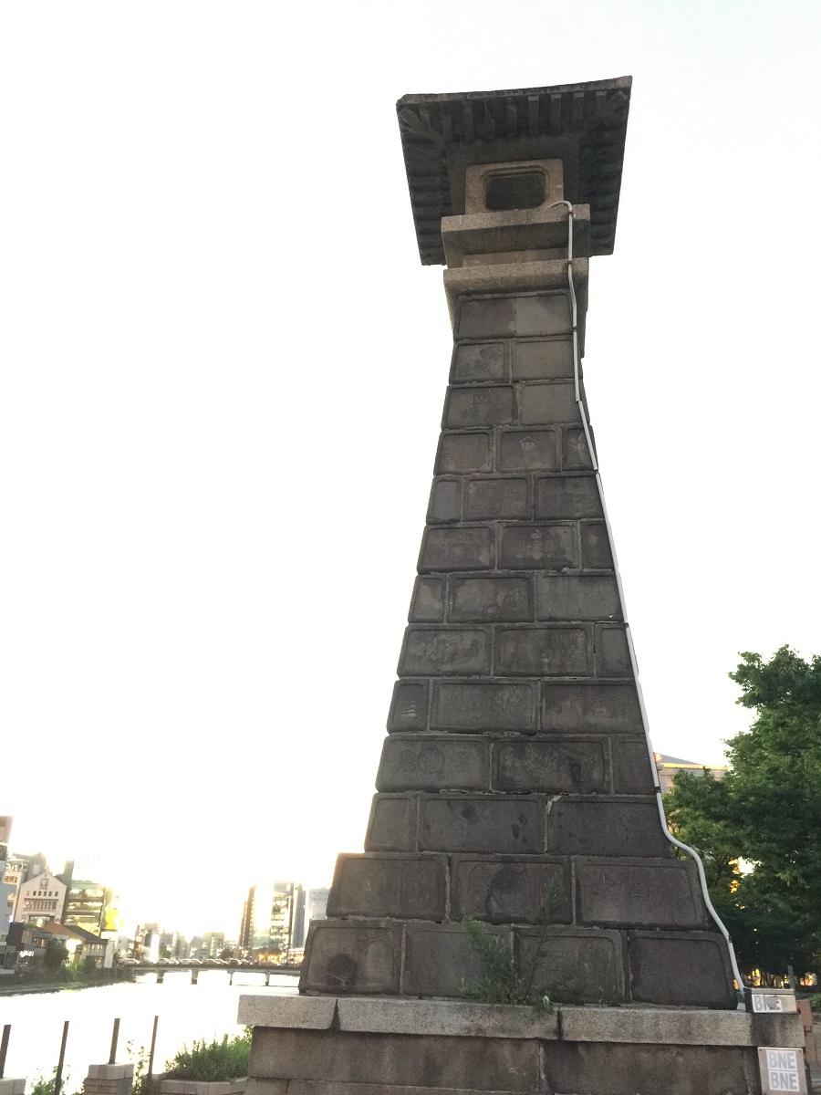 博多の中洲にある清流公園の隅の方に古い石灯籠が立っています。