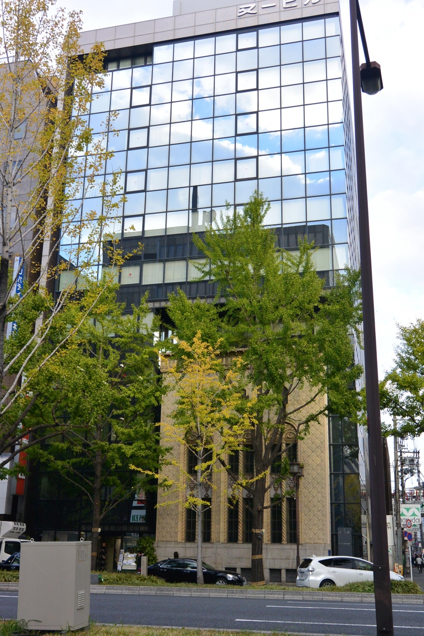 本町の南御堂から御堂筋を挟んで向かい側にあるビルです。元々大谷仏教会館だった建物で、建て替えの際に御堂筋に面した部分に旧ビルのファサードを保存活用しています。凝った装飾のテラコッタが美しく、側面の入り口にも旧ビルのデザインを復元した飾りが使われています。