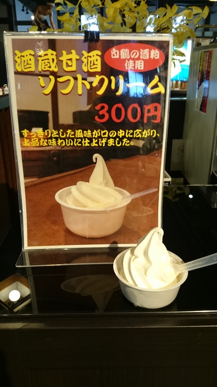 酒蔵甘酒ソフトクリームがあり、試飲の梅酒をかけて食べました、美味しかった♪