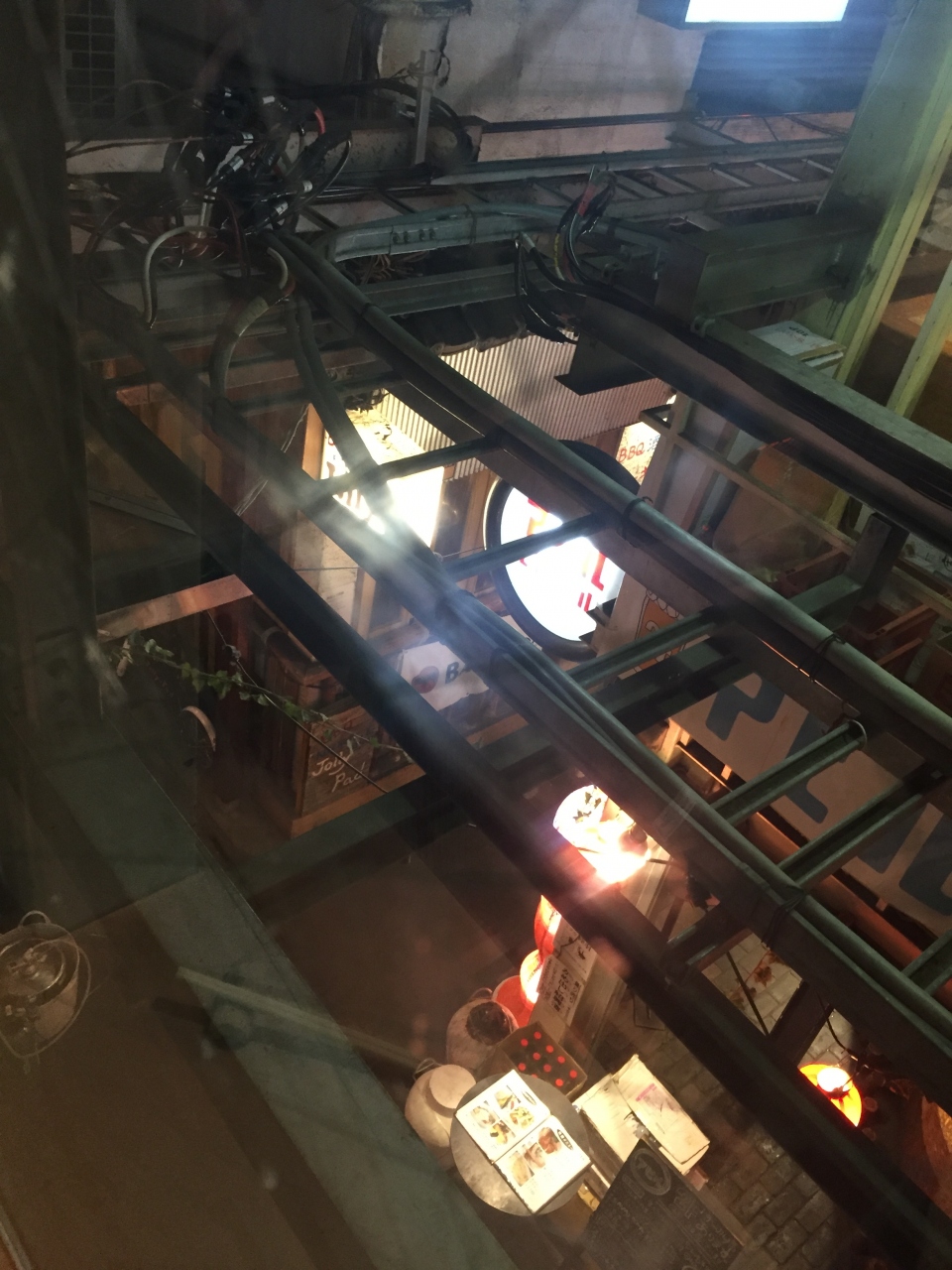 ハモニカ横丁の中にある立ち飲みのお店ですが、大きな窓からハモニカ横丁の景色が良く見えて、こんな風になっているのか!となんというかスケルトンの建物を眺めてるような感じです。