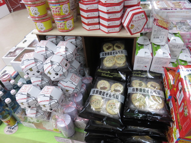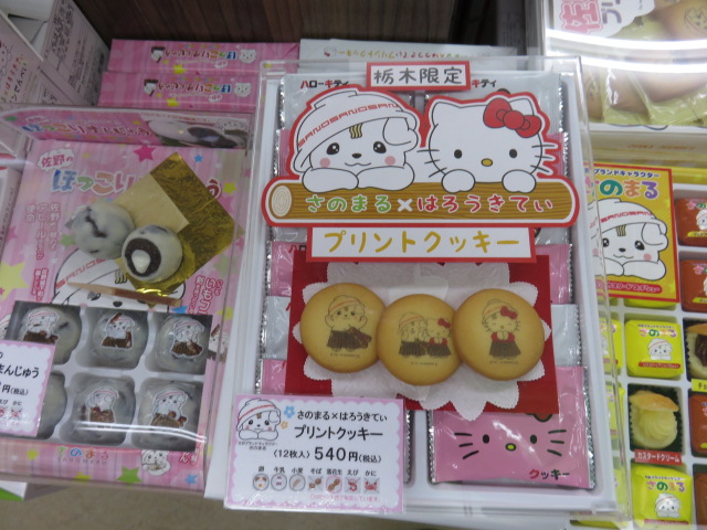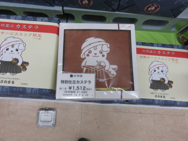 久々の佐野(下り)SAです。レモン牛乳を購入する目的で立ち寄りました。店舗内に入ると、陳列エリアの一角に「さのまる」が印刷された商品が色々と並んでいます。しかも大量に陳列されているのは圧巻です。パッケージに印刷されている程度の物から商品に印刷している商品まで、サービスエリアのキャラクターが数多くの商品展開をしているのは驚きでした。