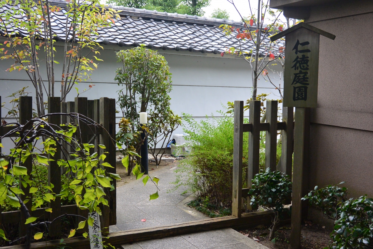仁徳天皇を主祭神とする古い神社ですが、社殿等は空襲でほとんど消失し、現在の社殿は戦後建てられたものです。木々が茂り静かな雰囲気が漂っていて、境内には「仁徳庭園」という小さな日本庭園のようなものもあります。