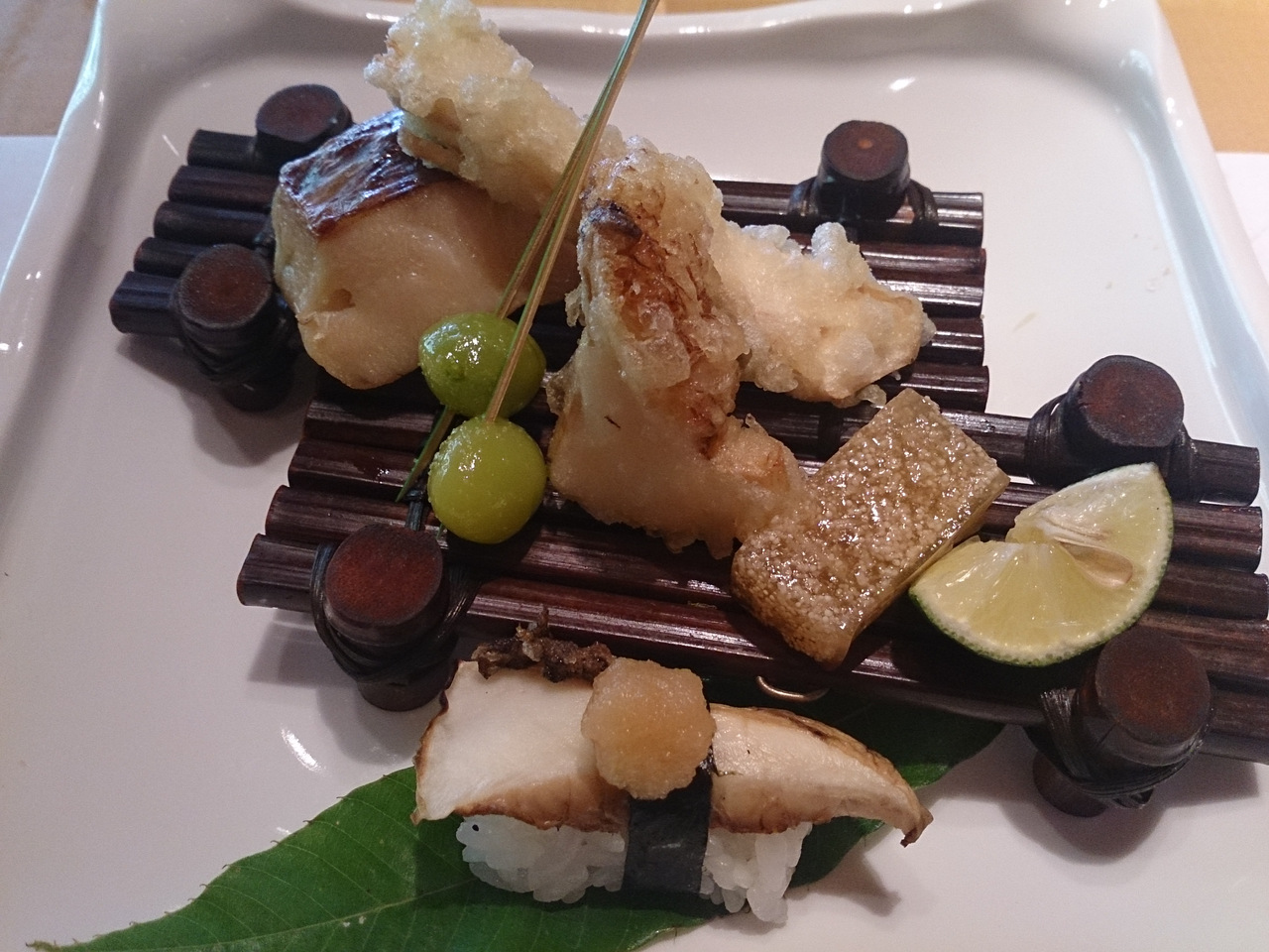 松茸会席(ランチ限定)7,500円をいただきました。人生初の本格的松茸コースです。さすがに、松茸の味も食感もふんだんに堪能できるコースで、天ぷらや、一口松茸寿司、黒毛和牛と松茸のすき焼き、釜飯はもちろん、茶碗蒸し、鱧真丈など全てが美味しかったです。来年、また秋に来たいと思いました。