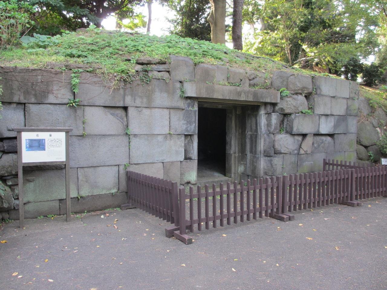 富士見多聞近くにある石に囲まれた穴です。説明板によると、大奥納戸わきにあることから、大奥用の調度を納めていたところではないかと言われているそうです。石は伊豆半島産の安山岩です。穴の前に立って色々な思いを巡らせると面白いです。