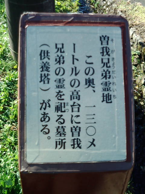 富士の宮は市の教育委員会がいろいろな標識を立てたり、地域の歴史がわかる散歩コースを作ったりしています。そんな散歩コースの一つを歩いて行くと、曾我八幡宮と曾我兄弟の霊地を訪れることが出来ます。