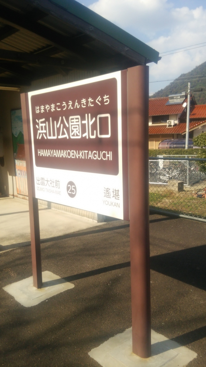一畑電車の出雲大社駅の一つ出前にある駅。駅の近くには島根ワイナリーや浜山公園があります。浜山公園は運動競技場、野球場、体育会などのスポーツ施設が集まっています。この駅はやはり浜山公園のためにある駅ですね。