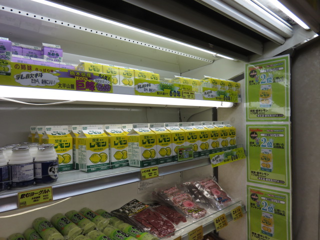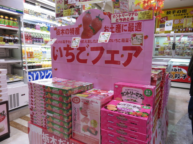 此方の駐車場は 自家用車100台は厳しそうです。渋滞情報と次の佐野SAが混んでいると先のPAが混むと読んで手前で食事休憩をとる事にしました。佐野SAは「さのまる」商品が有ったのですが、此方は当然普通の御菓子になります。力を入れていたのが「佐野の苺」のようです。当然、レモン牛乳も置いてあります。ブームの時は こんな時間に来ても品切れだったのですが・・・皆さん冷めやすいのかな?