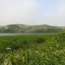 湖の周りは草ぼうぼうで、散策道は整備されていない。