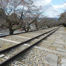 地下鉄蹴上駅近くです。明治時代から昭和初期に使用された舟運用傾斜鉄道のレールです。