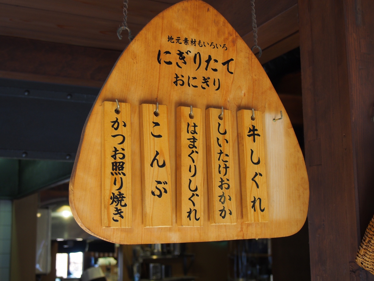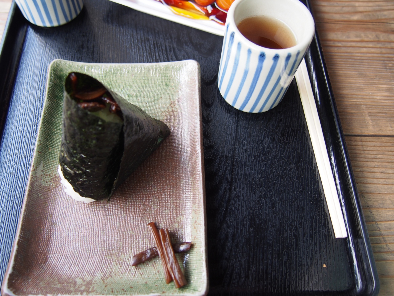 おにぎりやお団子なんかいただけるお店です。セルフサービスで、いろんなものが食べられるのでちょっと和風フードコートみたいな感じです。