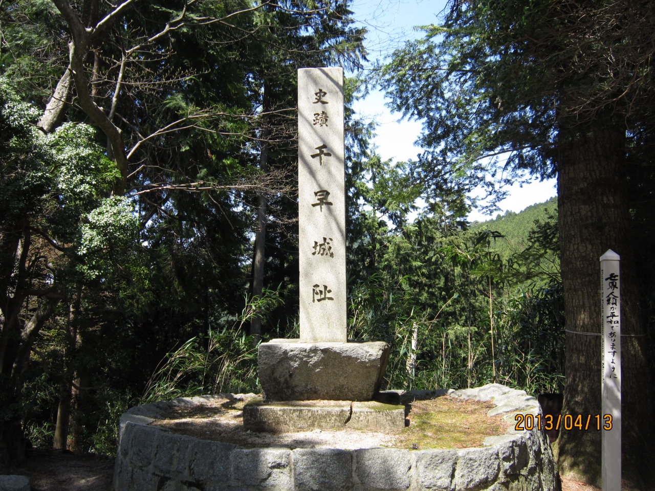 千早神社があるのは、南北時代に楠木正成が築いた千早城の二の丸址です。本丸は聖域となっており、立ち入ることはできません。この千早城での戦いが後の鎌倉幕府の滅亡へ繋がったと『太平記』に記されています。