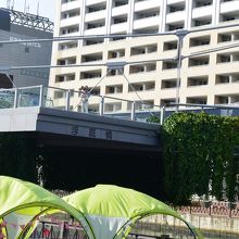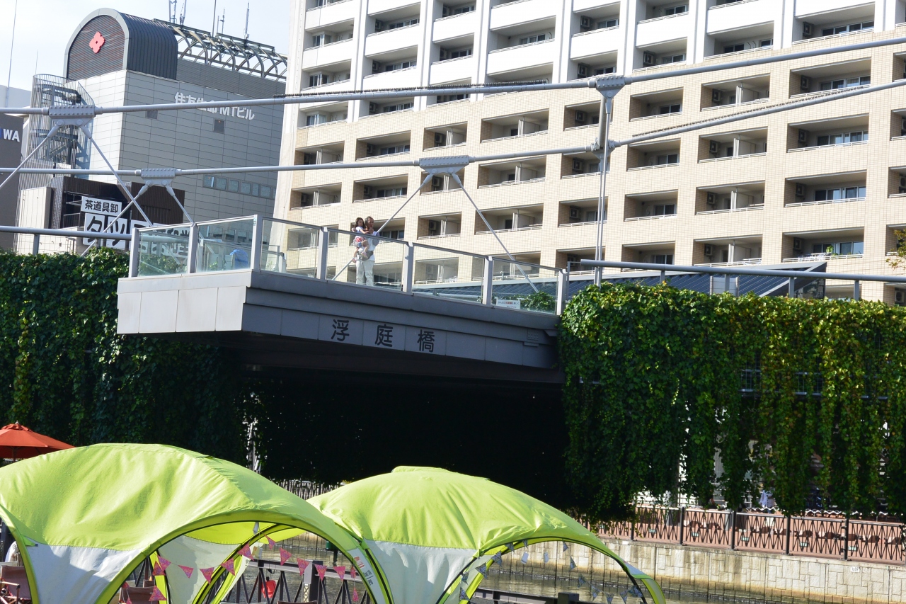 道頓堀川をまたぎ、湊町リバープレイスと南堀江地区を結ぶ橋で、平成20年に完成しましたが、とてもユニークなデザインです。歩行者専用の橋で、単に渡るだけでなく、憩いのスペースになるようにとのコンセプトがあります。