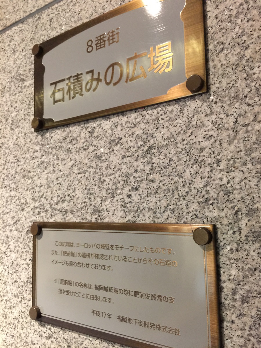 福岡城の石垣をそのまま壁にしたという区画で、意外とおしゃれな雰囲気があります。