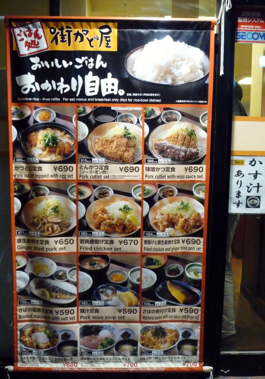 24時間営業で外に写真と値段入りのメニューがあるので分かりやすいです。