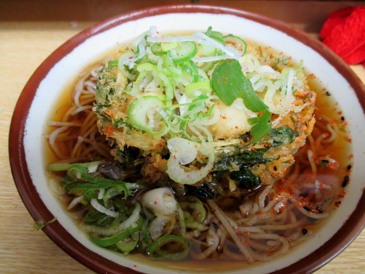 出汁がきいていて、そばは細麺です。天ぷらはカリッと揚がっていてサクサク。