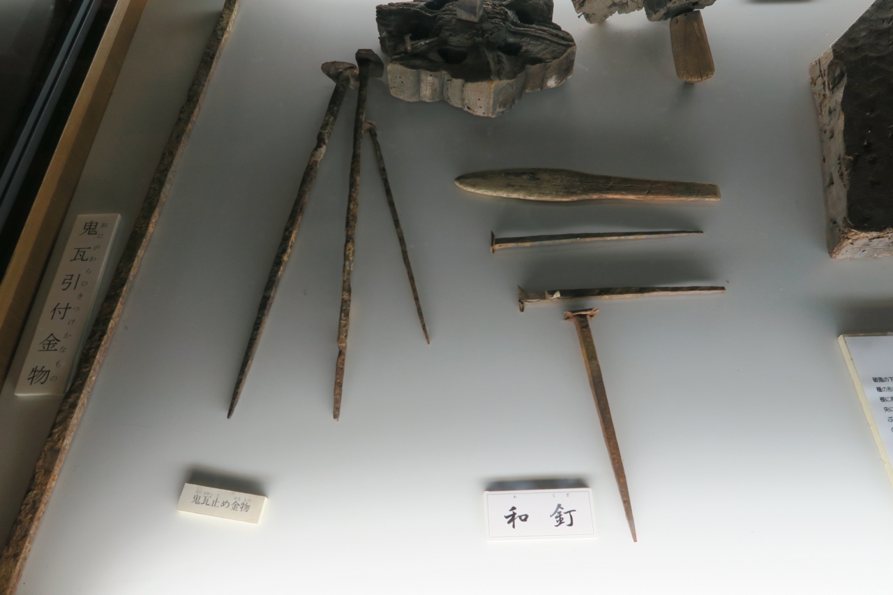 彦根城 (ヒコネジョウ)では、この場所で出土した瓦に使う工具を見る事ができます。ひとつひとつ、考えられて作られていて、関心させられます。その他にも様々な物がありますので、彦根城に、ぜひ、一度、行ってみてください