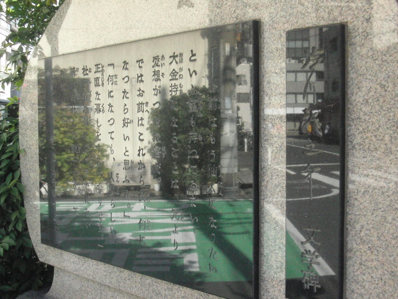 けっこう新しい文学碑で、ぴかぴかに光っていました。