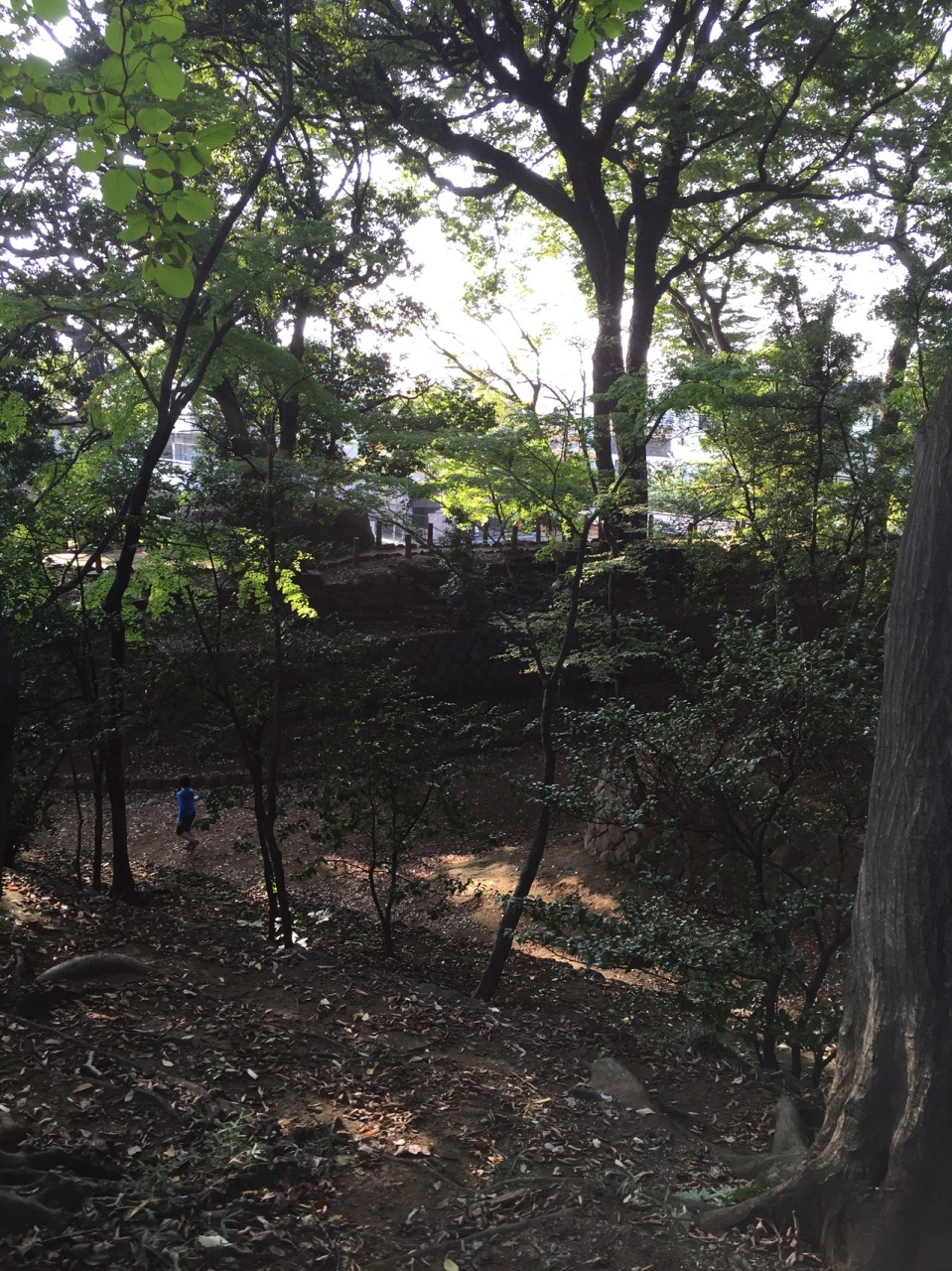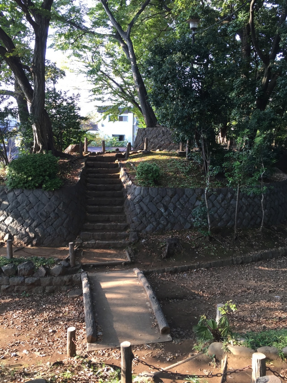 ところどころ石垣がありますが、こちらは公園化する時に崩落防止で積み立てられたものだそう。
