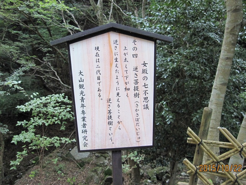 「逆さ菩提樹」は女坂の七不思議の四番目で、大山寺の前不動のすぐ近くにあります。