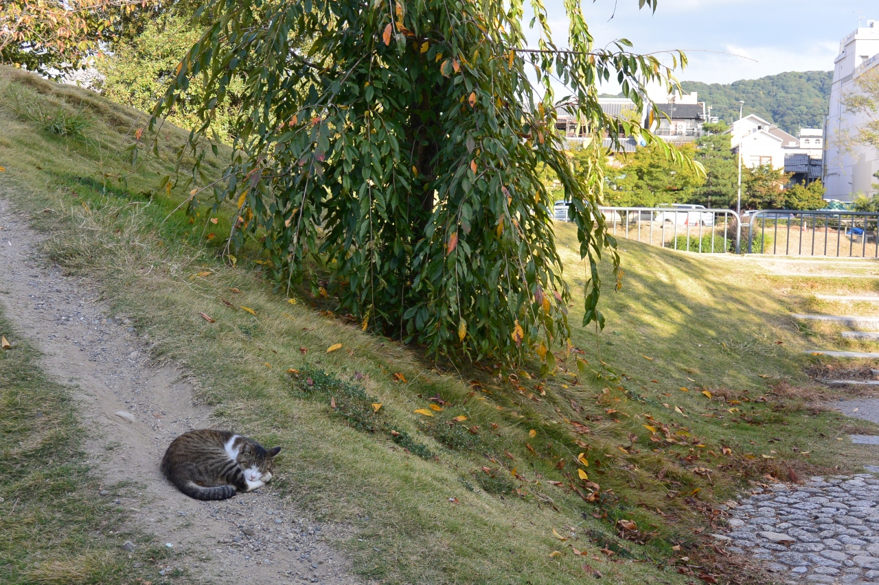 先斗町の三条よりにある小さな公園ですが、築山があるのでそこに座って鴨川を見ながらのんびりできます。カップルには鴨川の河原でなくても、意外に穴場のスポットかも。私は昼間に行きましたが、夜になるとどんな感じになるのかわかりませんが。