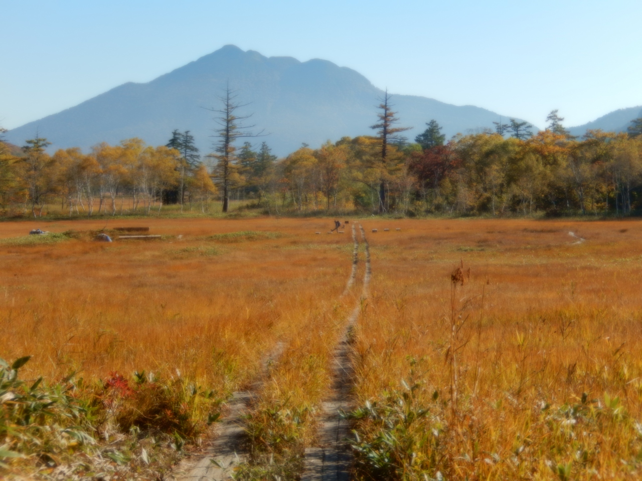 水芭蕉やニッコウキスゲのお花を見ながら歩く人が多いようですが秋の草紅葉もいいです、秋に燧ヶ岳や至仏山を眺めながら木道を草紅葉を見ながら歩くのもいいですね、夏とは違った良さがありました、尾瀬ヶ原内には何軒もの山小屋がありますので休憩をしながら歩くことが出来ます。