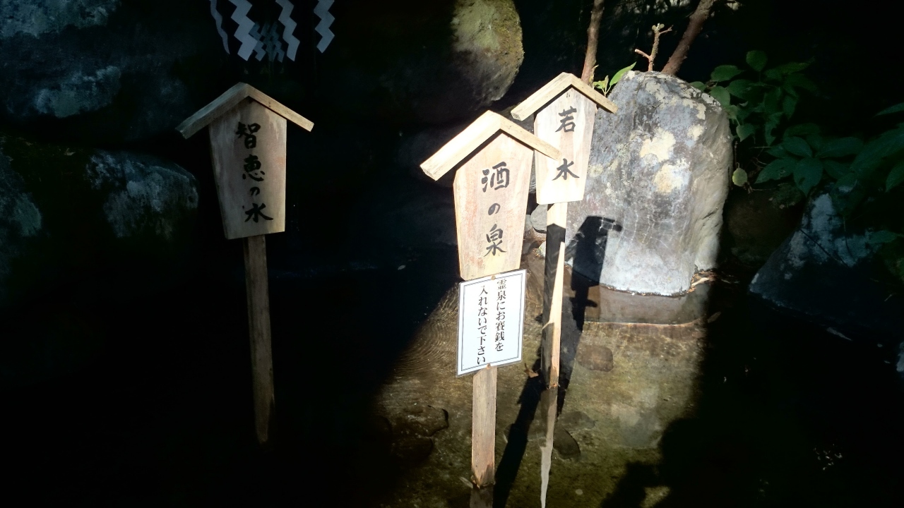 「知恵の水」「酒の泉」「若水」と書かれた二荒霊泉の横にひっそりと銭洗い場がありました。小さなかごが置いてあったので、財布から小銭を取り出して洗ってきました。これでちょっとはお金がたまるかな?