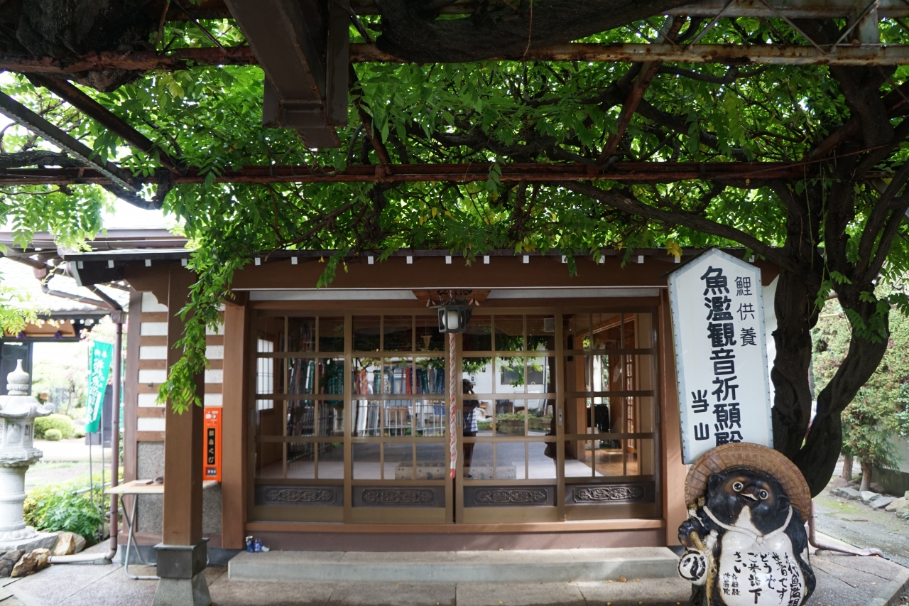 見どころは「魚濫観音像」。入口脇の建物に安置されていて、硝子越しに拝むことができます。松代藩では養鯉が奨励されていたそうで、この観音は鯉に乗る姿。料理人に信奉されてきたようです。