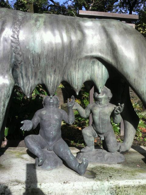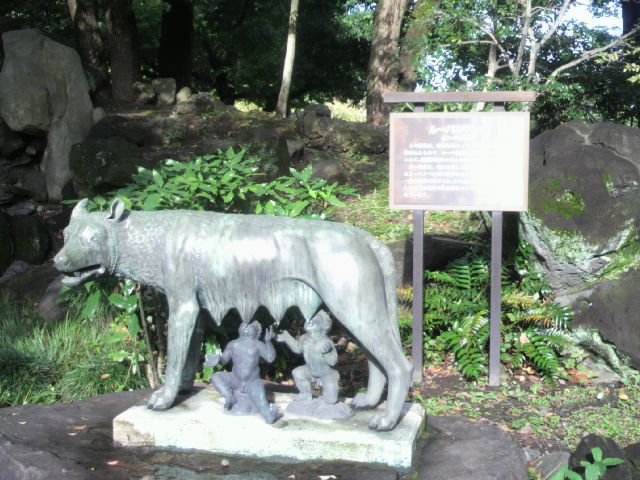 日比谷公園に、幼児が狼の乳を飲んでいる銅像があります。