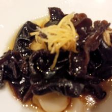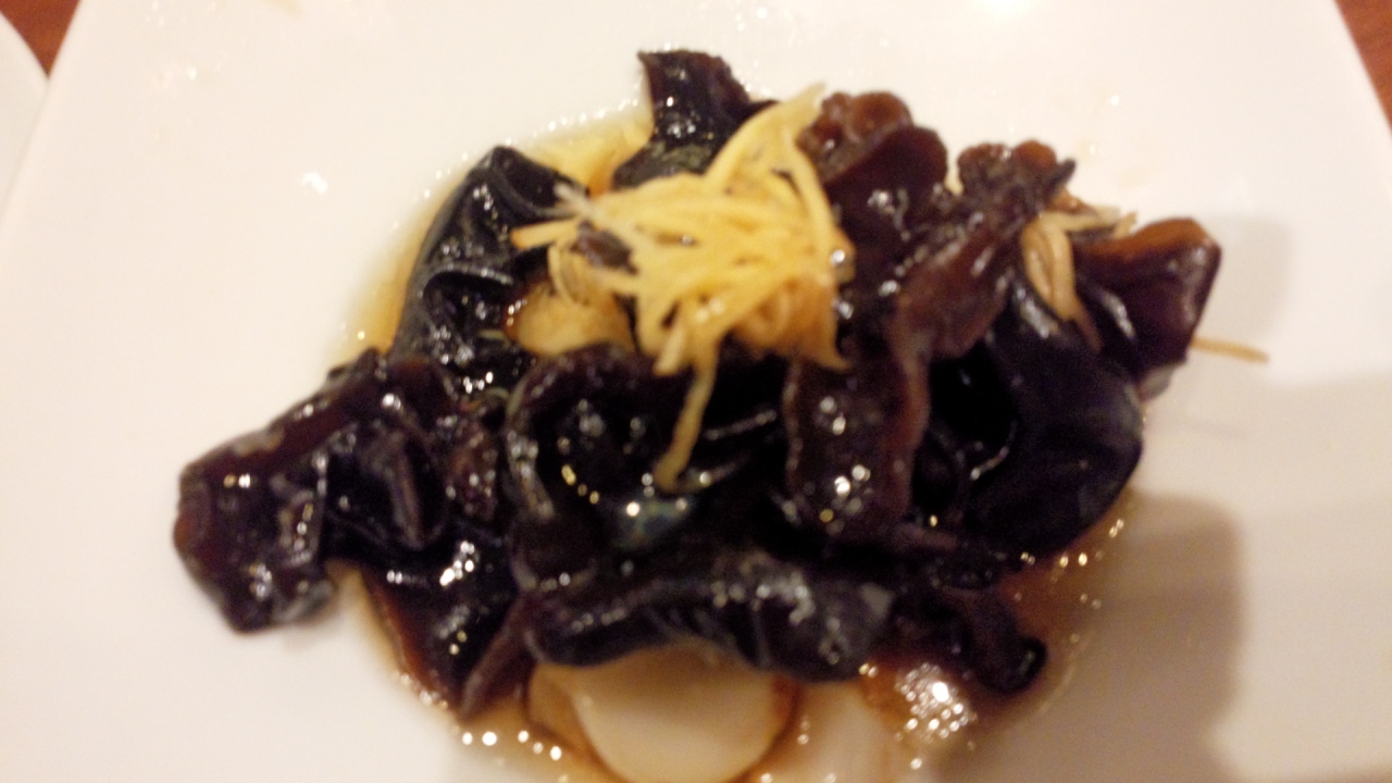 写真はきくらげの黒酢炒め。にんにくかと思ったのがユリネでおいしかったです。