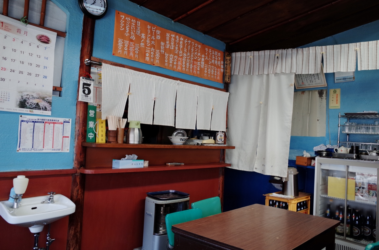 入店しました。おばちゃんが一人でやっているらしい。あーーこの空気感好きだなぁ。室内のブルーとブラウンの色使いの素晴らしさ。そして、昭和の貴重ビンテージガラスのガラス戸が周りを囲む光が柔らかい。