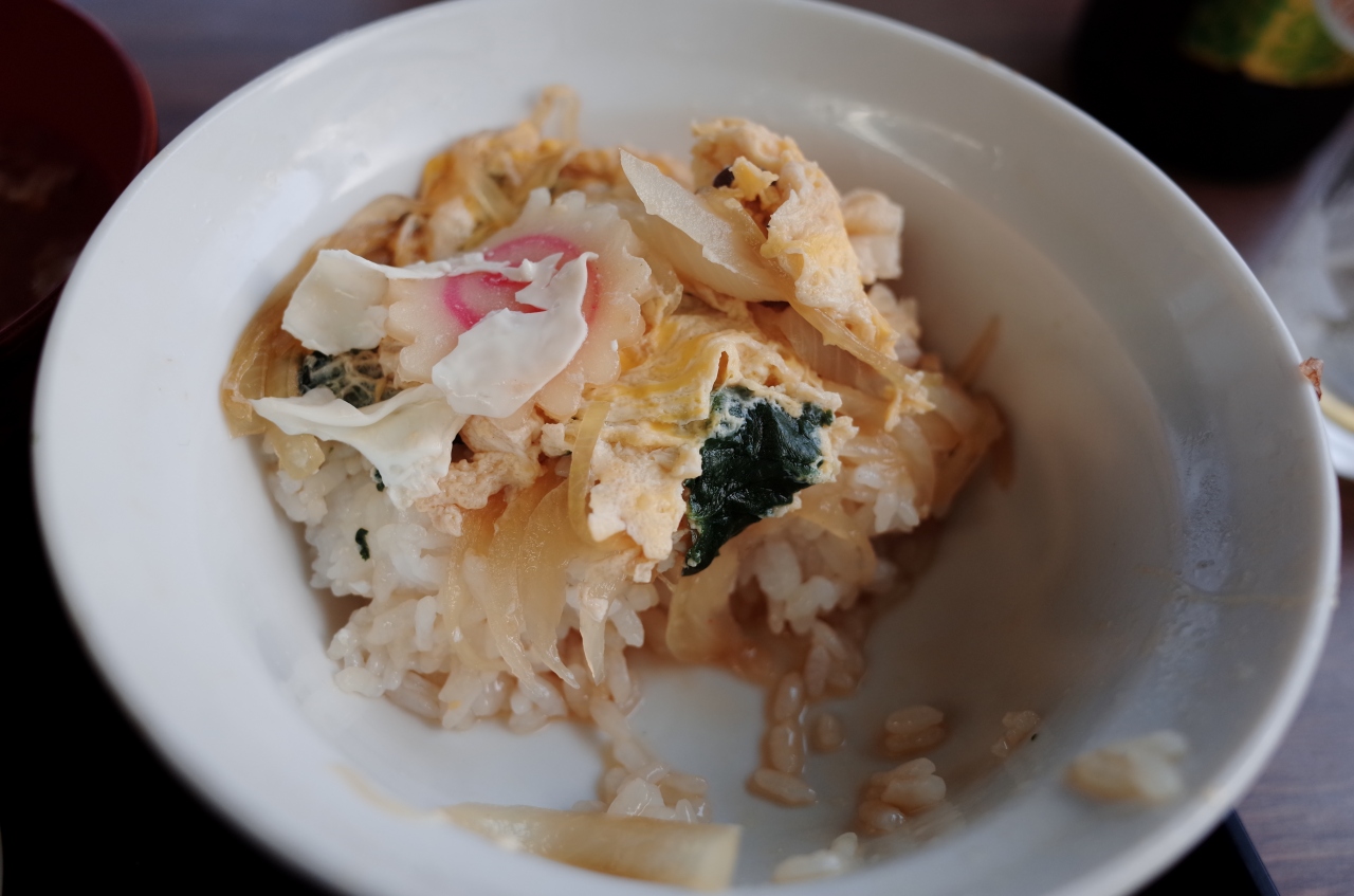 御託はいいとして、とにかく僕は、玉子だけ一本勝負する爽やかな玉子丼が好きなのだ。みのり食堂さんの玉子丼は素晴らしかった。玉子、しいたけ、ほうれん草、玉ねぎと一枚のナルトだけのシンプル料理。本当に旨い!僕としてはパーフェクトだった。みのり食堂のおばちゃんの人間性と料理は、茅ヶ崎の文化財だと思う。