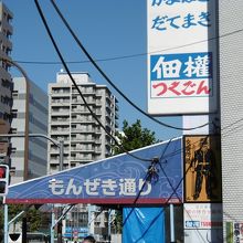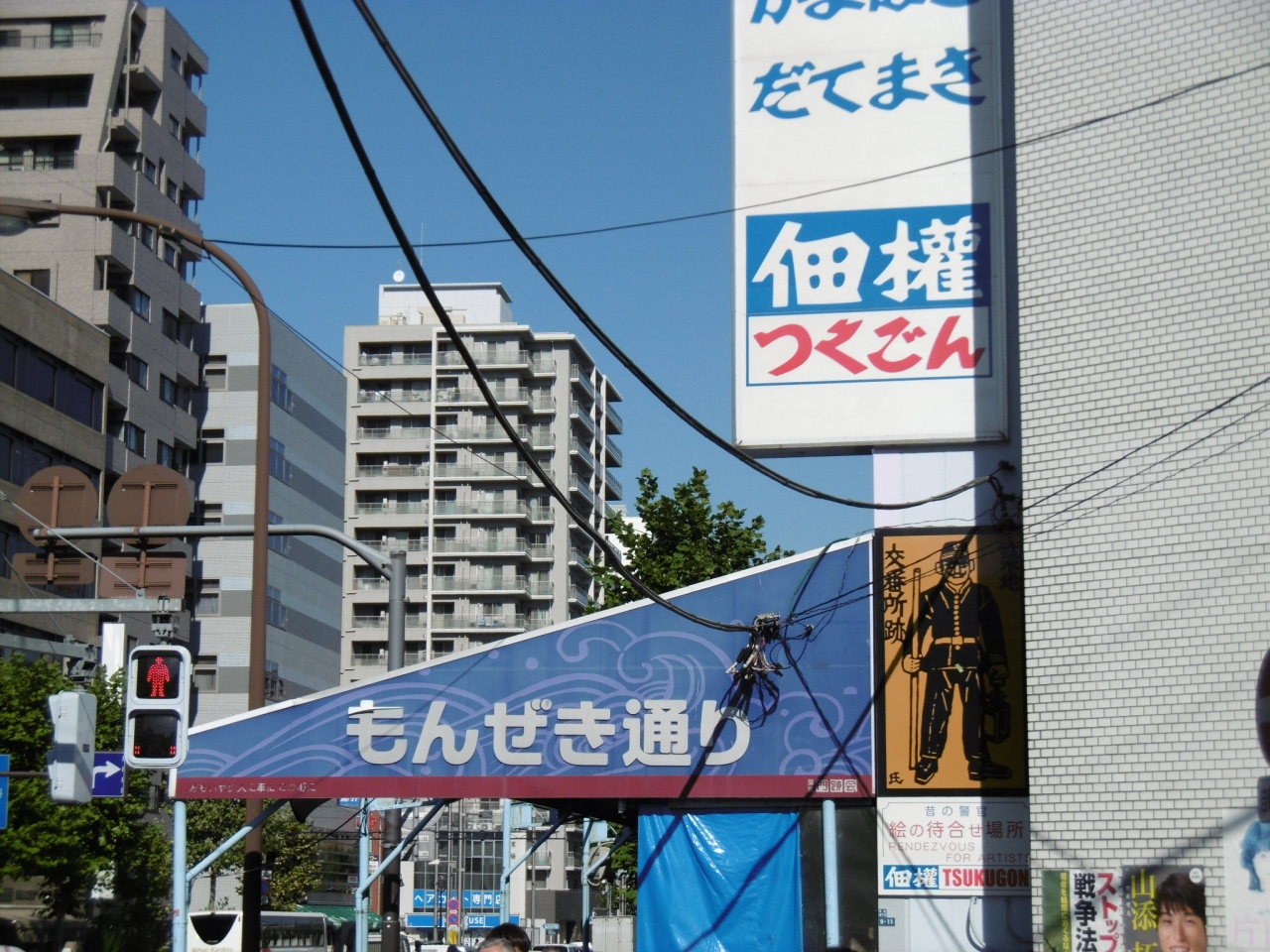 新大橋通り沿い、築地市場駅と築地駅の間に“もんぜき通り”があります。