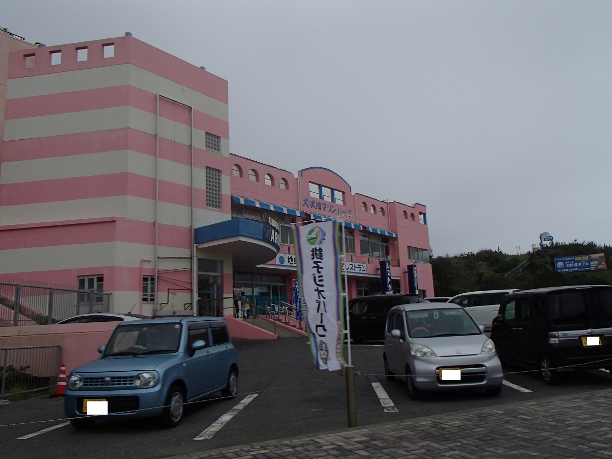 犬吠埼灯台に入る道の手前にあるピンク色の水族館です。