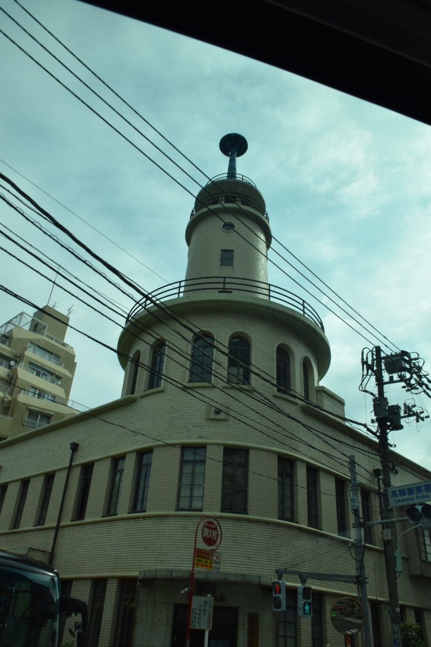 もともとは東京消防庁高輪消防署でしたが、現在は同消防署の二本榎出張所です。灯台のように少しとんがった尖塔(せんとう)が特徴です。昭和初期の建造物で、東京都選定歴史的建造物に選定されています。とてもレトロな建物です。