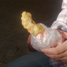 その中から、明石だこの天ぷらと海老のゆば巻きを購入し、お店横のベンチで頂きました。