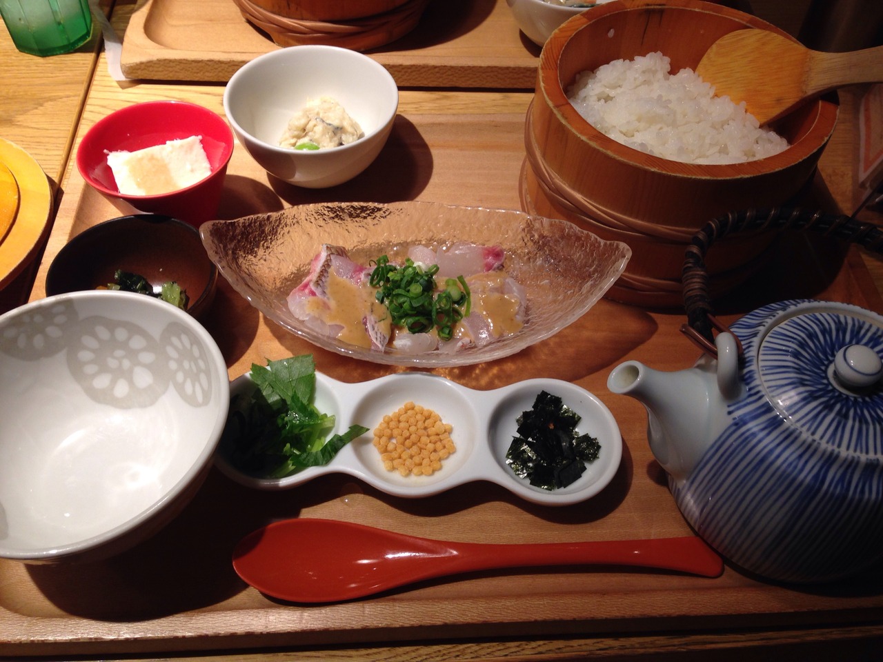 今回注文したのは、鯛茶漬け!定食を頼むと、ソフトドリンクはお安く注文することができます。