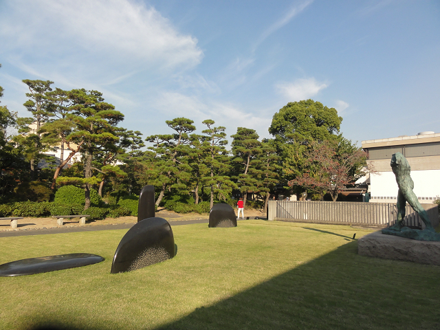 大原美術館は本館含めて4館あり、敷地内に在るのですが一瞬どう回る?と考えました。入り口前の芝生には大きな彫像が2体、磨き抜かれた石が点在してました。近代的な絵の中には教科書で見たような岸田劉生の絵もありました。地階部分では現代作家の絵やオブジェなど奇抜な作品も見られました。平日午後でしたが見学者も少なくゆっくり見られました。